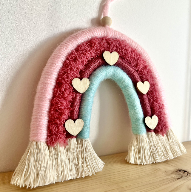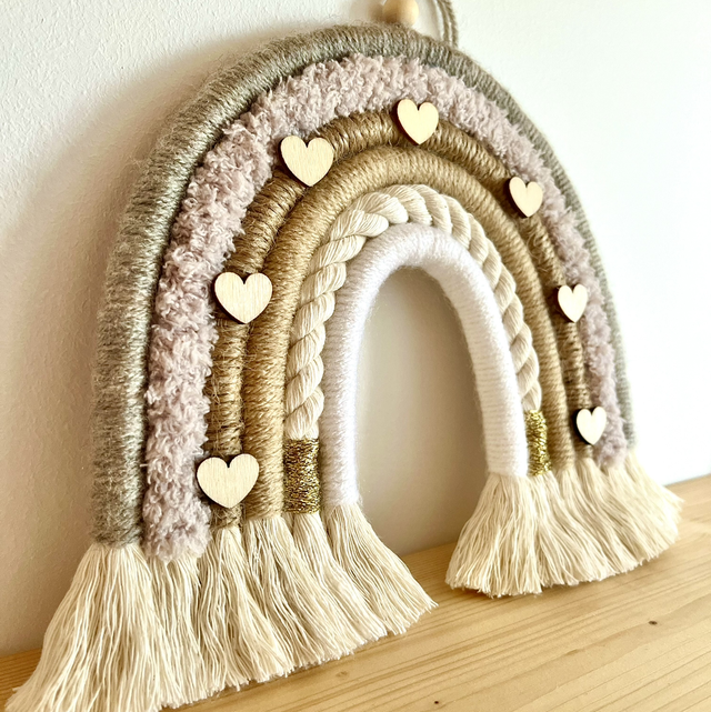 Arc-en-ciel en macramé avec éléments en bois à personnaliser