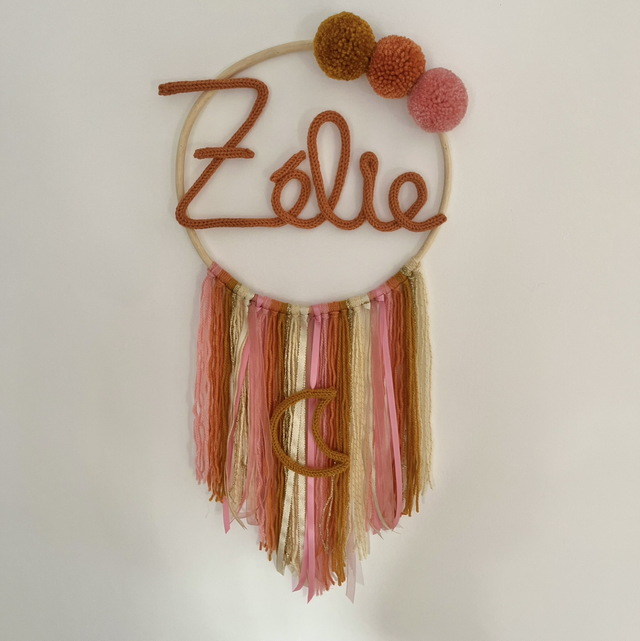 Décoration murale prénom en tricotin attrape rêve à personnaliser