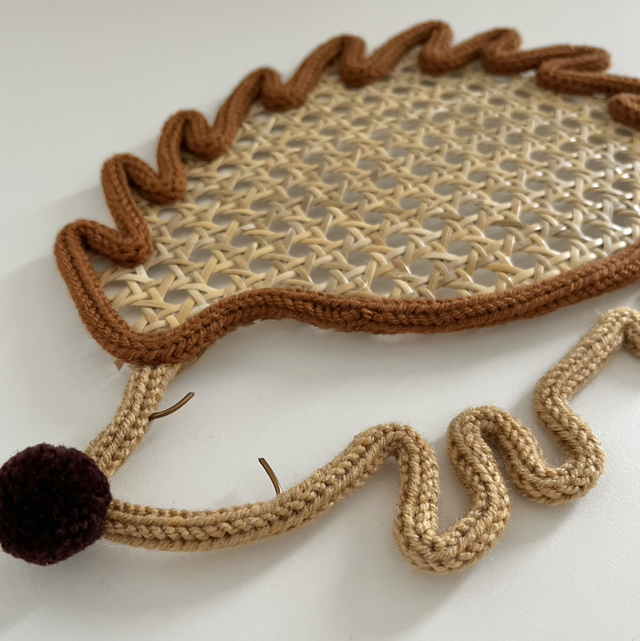 Apportez une touche de poésie et de douceur à votre décoration avec ce hérisson en tricotin et cannage entièrement fait main.