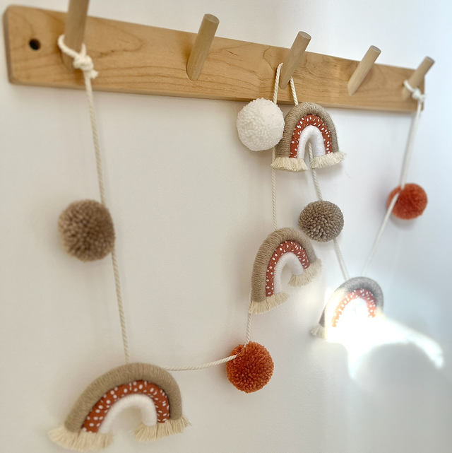 Guirlande arcs en ciel et pompons avec corde de coton français 🇫🇷 Taille 120 cm environ.