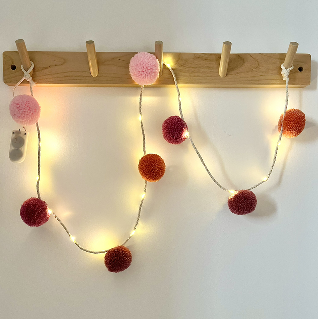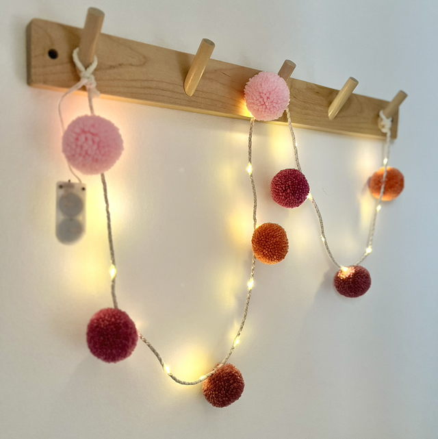 - Guirlande taille 200 cm avec 12 pompons (longueur idéale pour lit cabane 140/160 cm). Option led possible. Option pinces en bois possible pour photos.