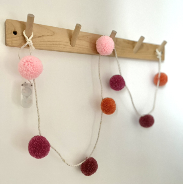 Guirlande de pompons sur corde de coton.