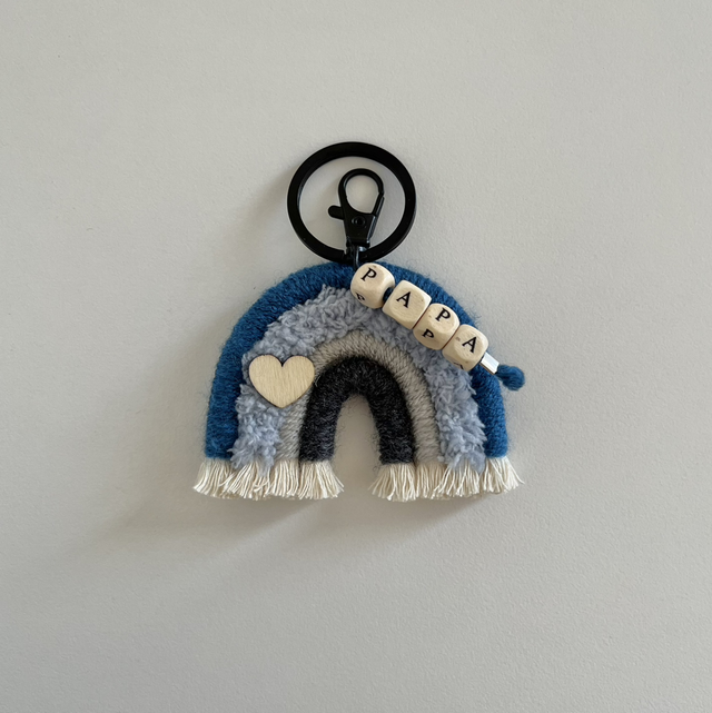 Porte clés arc en ciel « papa » avec corde de coton français 🇫🇷 taille 7 x 5 cm.