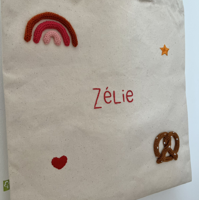 Un sac unique, personnalisable avec le prénom de votre choix, pensé comme une alternative écologique au plastique et idéal pour le quotidien : école, activités, livres, petites affaires…