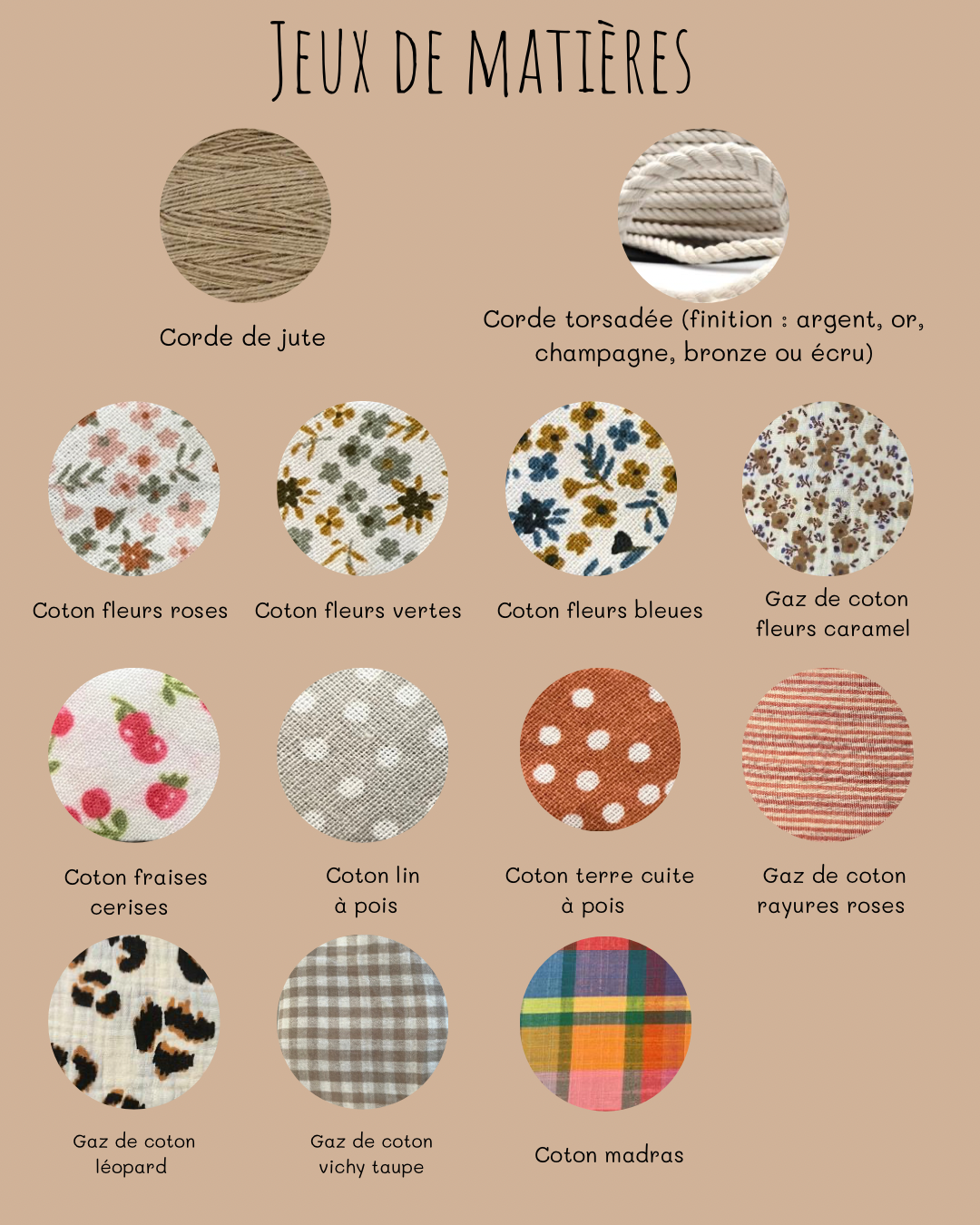 Ici vous retrouvez le nuancier pour personnaliser vos créations afin de la rendre unique et à votre image.
